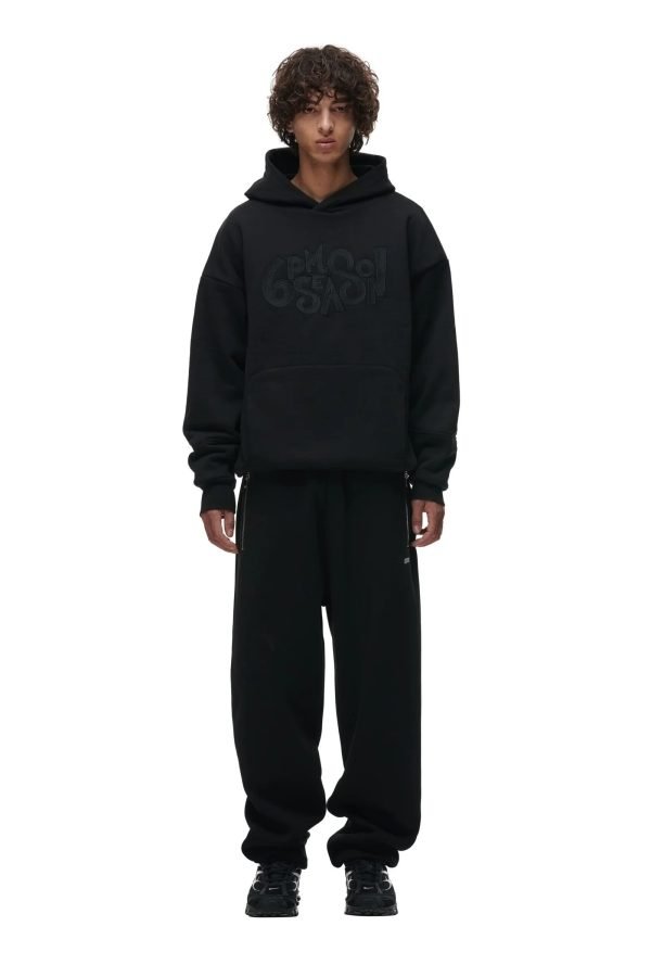 6PM double hoodie black